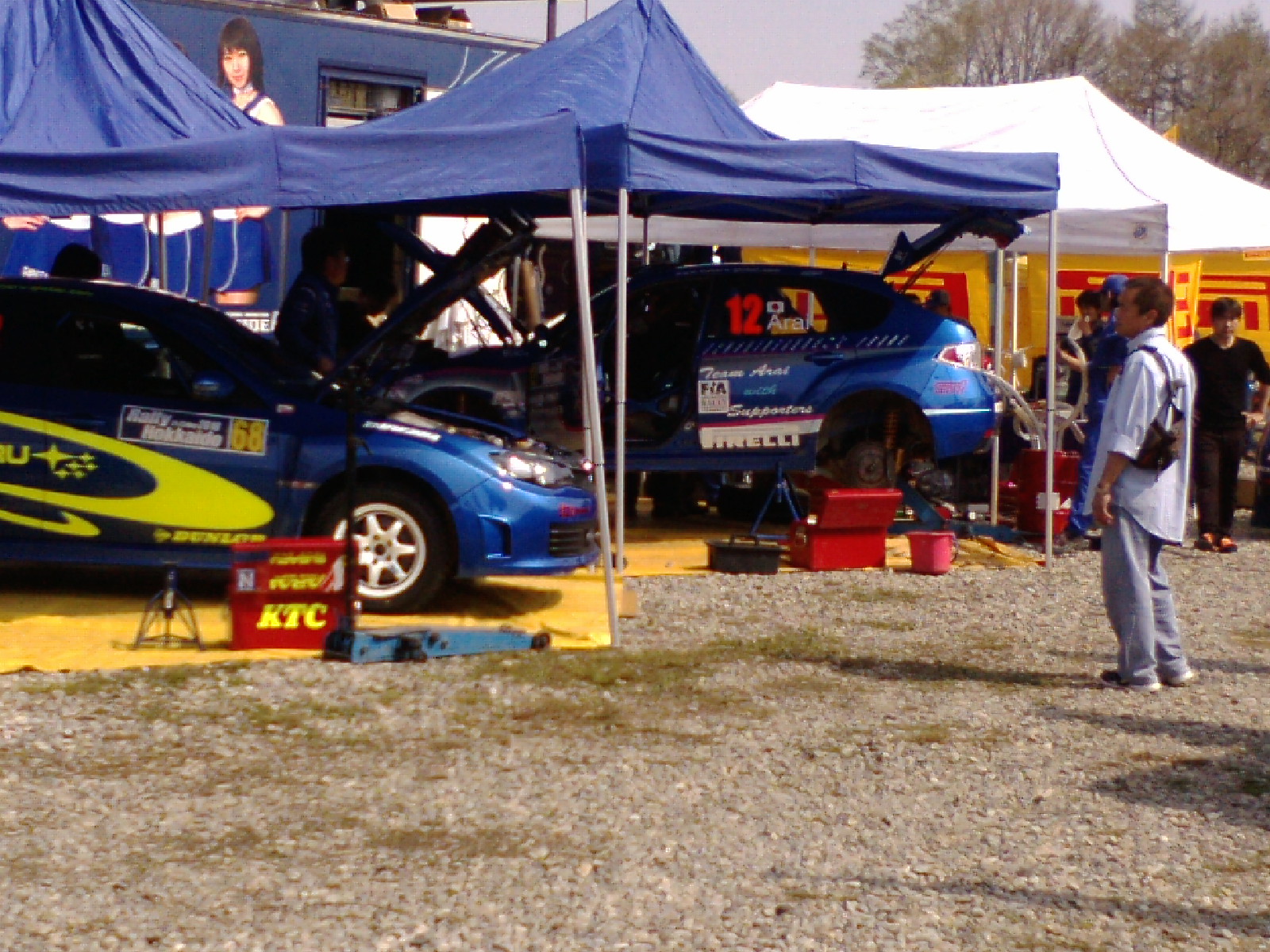 普段はWRCを転戦している新井選手(奥)と勝田(手前)の写真がきましたのでUPしますね。